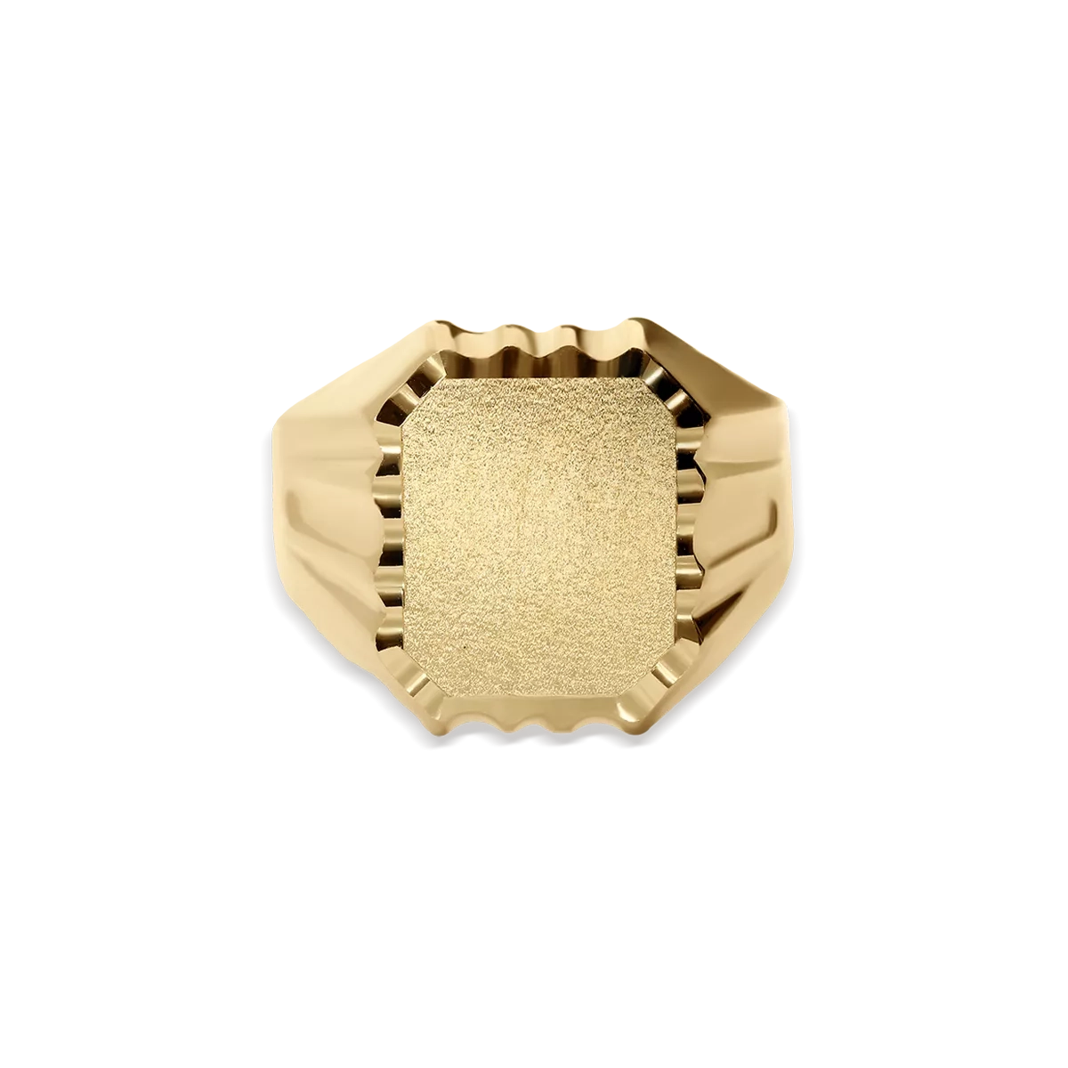 Sello rectangular dorado con acabado satinado y laterales estriados. Un diseño clásico y elegante, ideal para grabar iniciales o un símbolo personal.